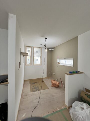 照明器具が点くようになり、室内が一気に明るくなったことで、完成の姿がよりはっきりと感じられるようになりました。