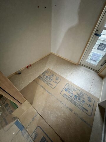現在は引き続き、内装下地づくりを進めています。石膏ボードを貼る前に必要な下地を仕込み、その後ボードを一枚ずつ丁寧に貼っていきます。