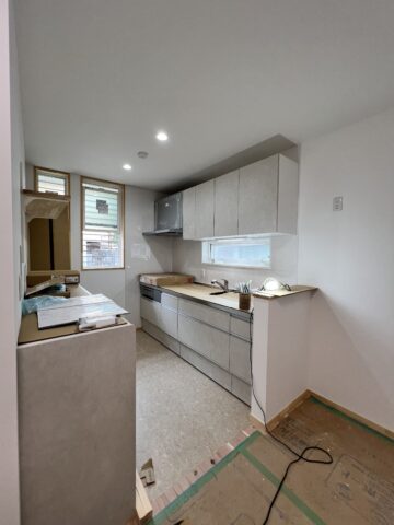 クロスやクッションフロアを貼ったり、キッチンやトイレを設置したりして、いよいよ住まいとしての完成が近づいてきます。